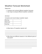 Free weather worksheets for learning all about the weather Severe weather worksheets. This first activity makes a great lesson starter to the topic with pupils thinking about what they can see, what they can infer and what they can predict from looking at the picture. This next activity comes in four different versions: tornado, heavy snow, heat wave and polar vortex.